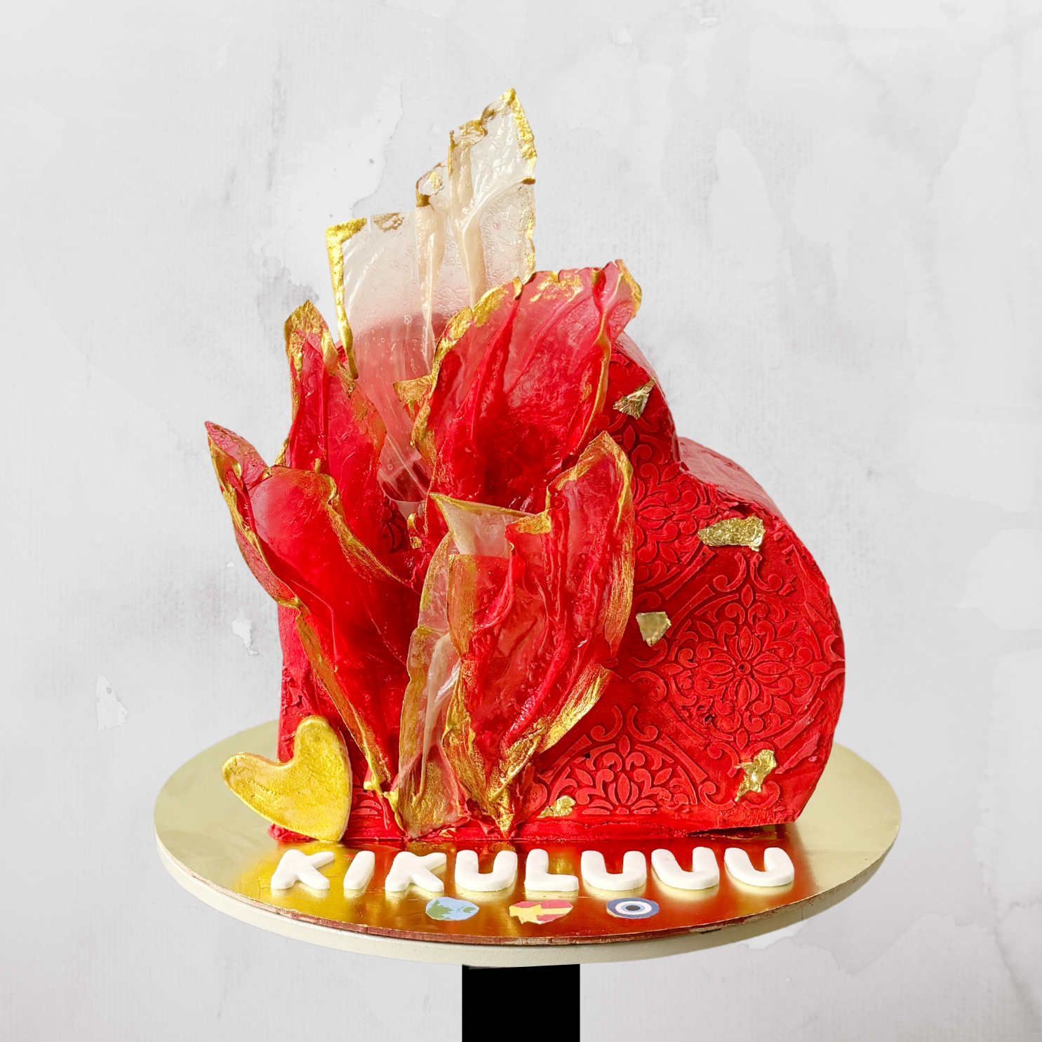 Abstract Heart Shape Red Flame Cake