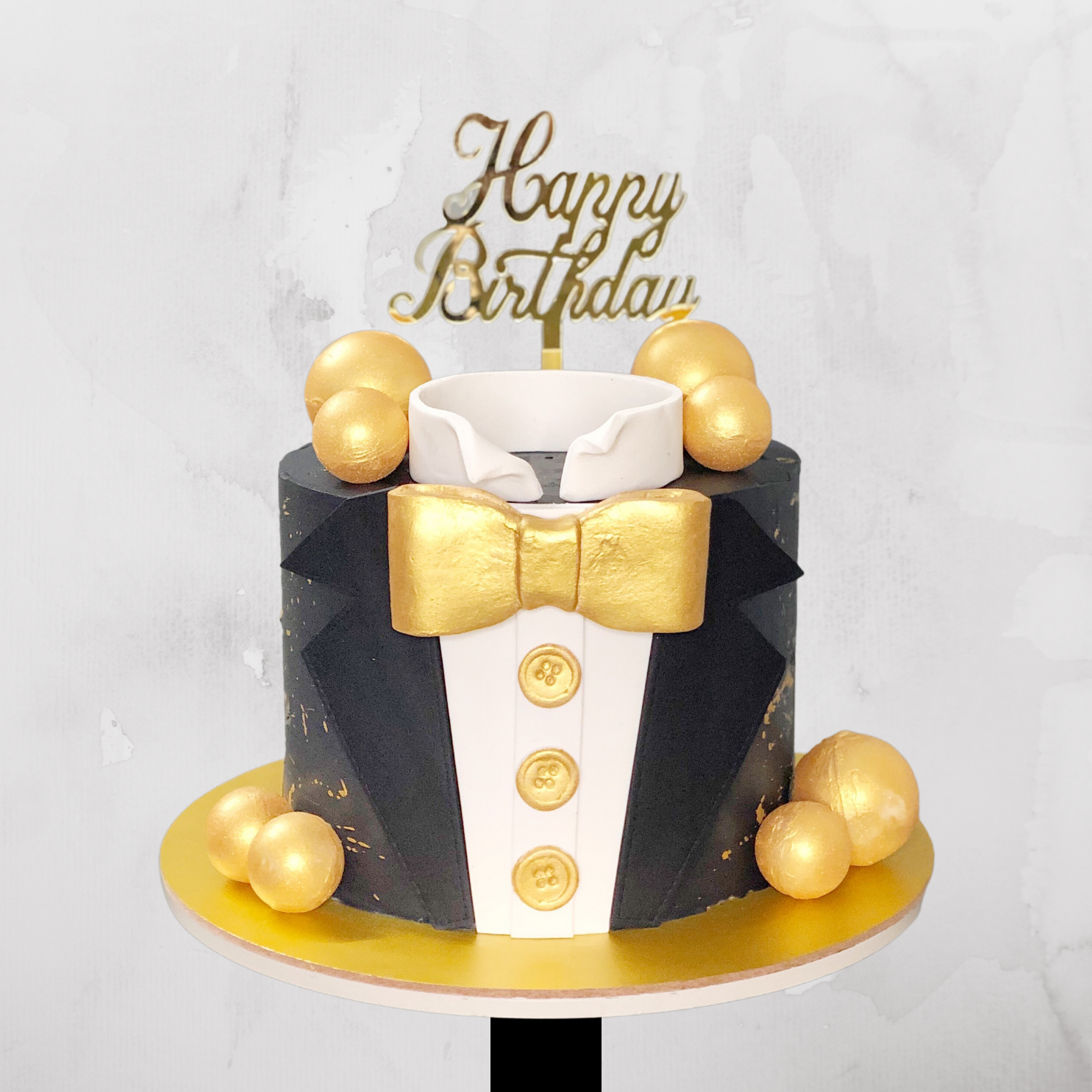 Tux & Gold Ball Cake