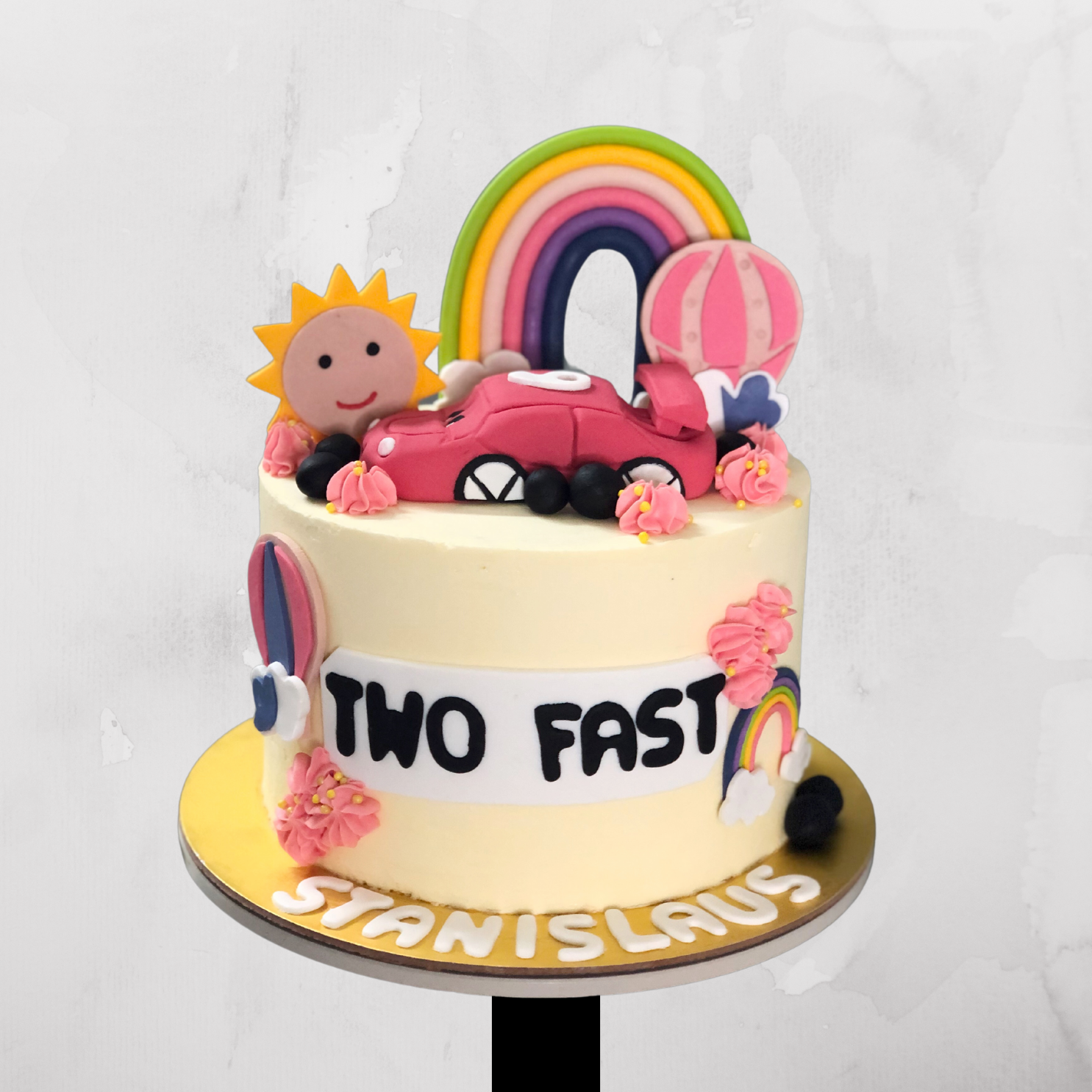 Too Fast Two-Year-Old Car Cake ? Rainbow Racing Theme