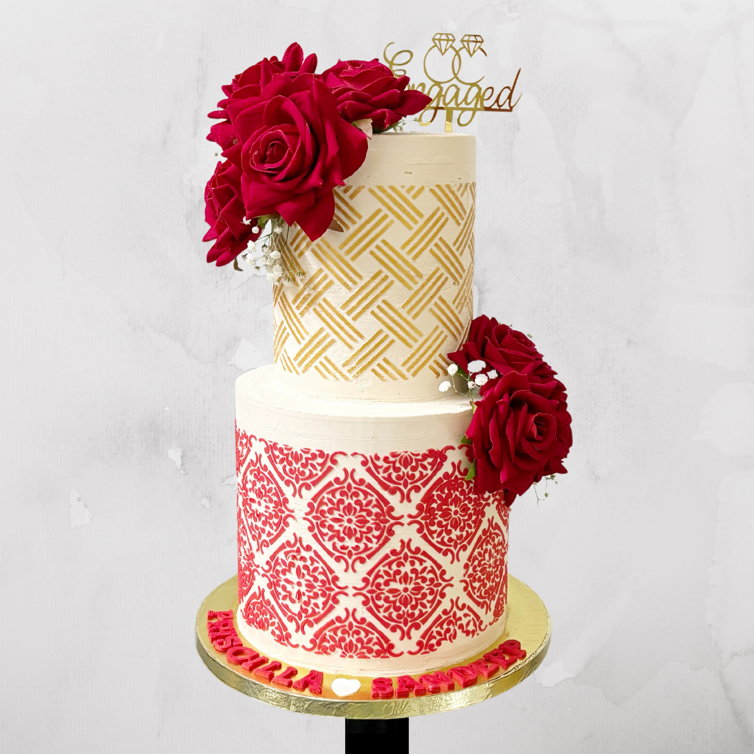 Royal Red & Gold Traditional Engagement Cake