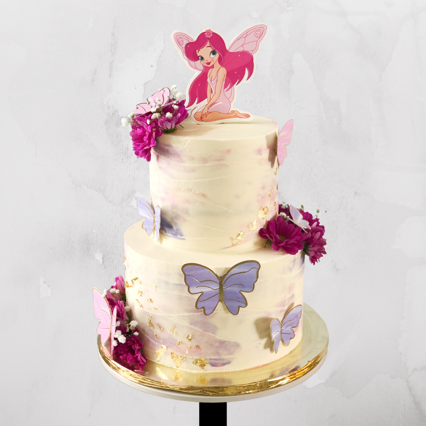 Fairy Themed Birthday Cake with Pink Fairy Topper