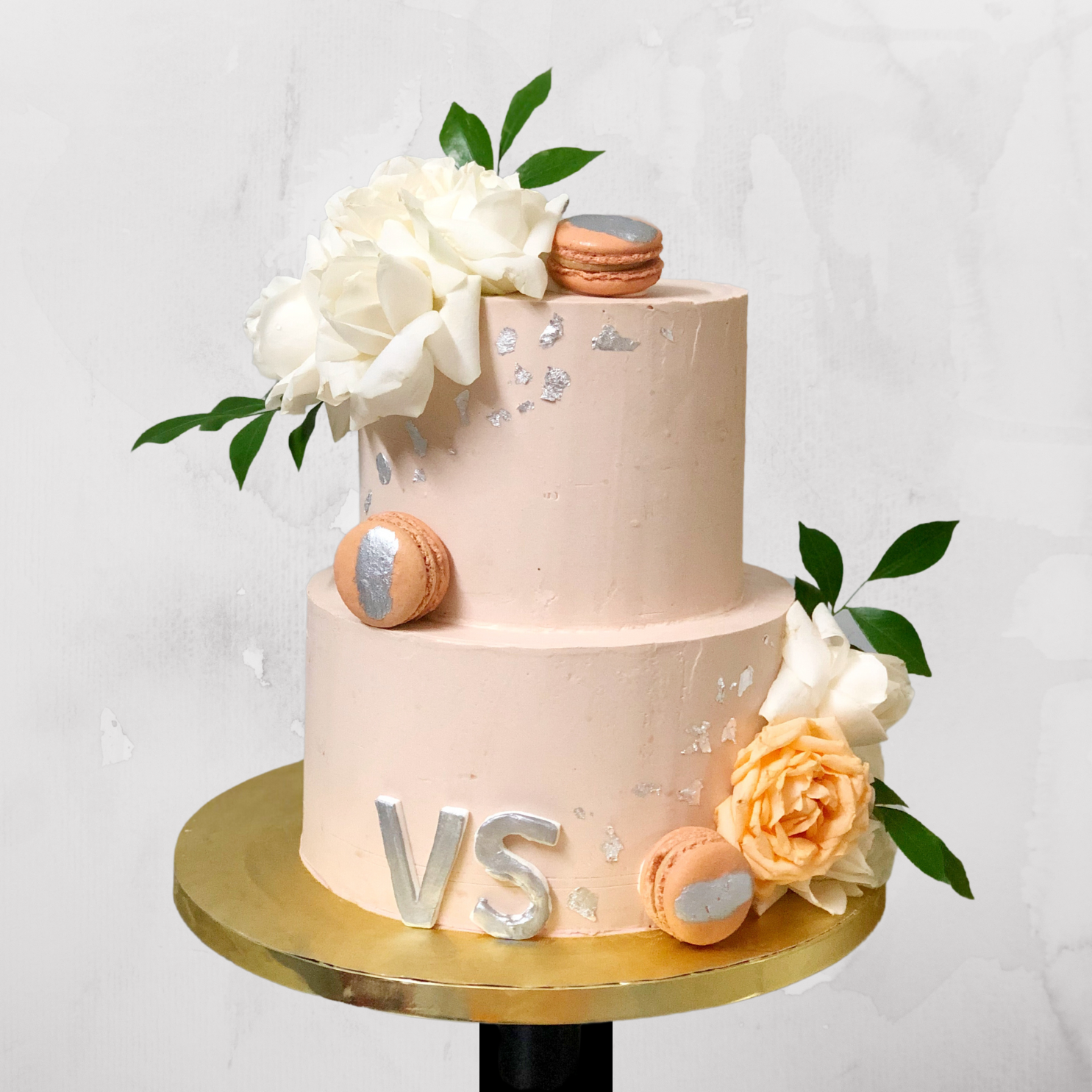Minimal Silver & Macaron Cake