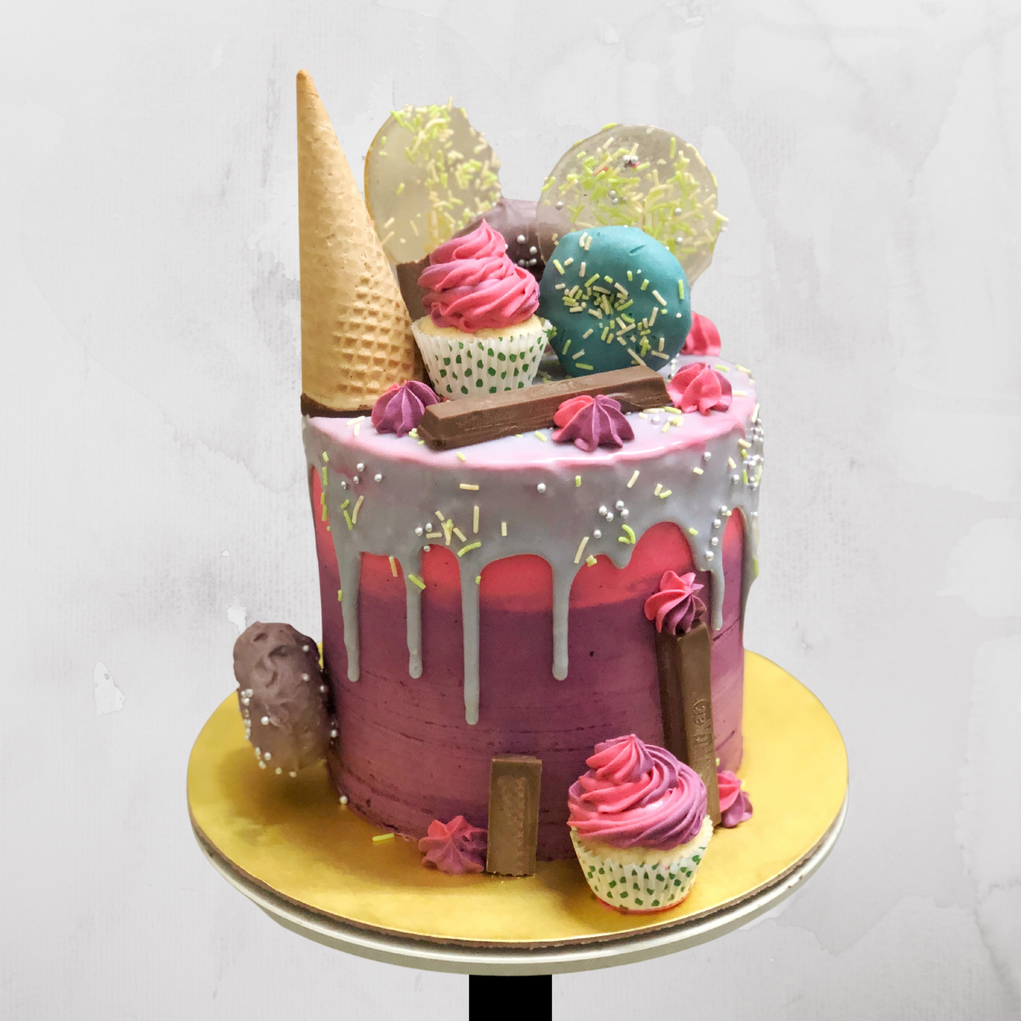 Candy Wonderland Drip Cake with Cupcakes & Cones
